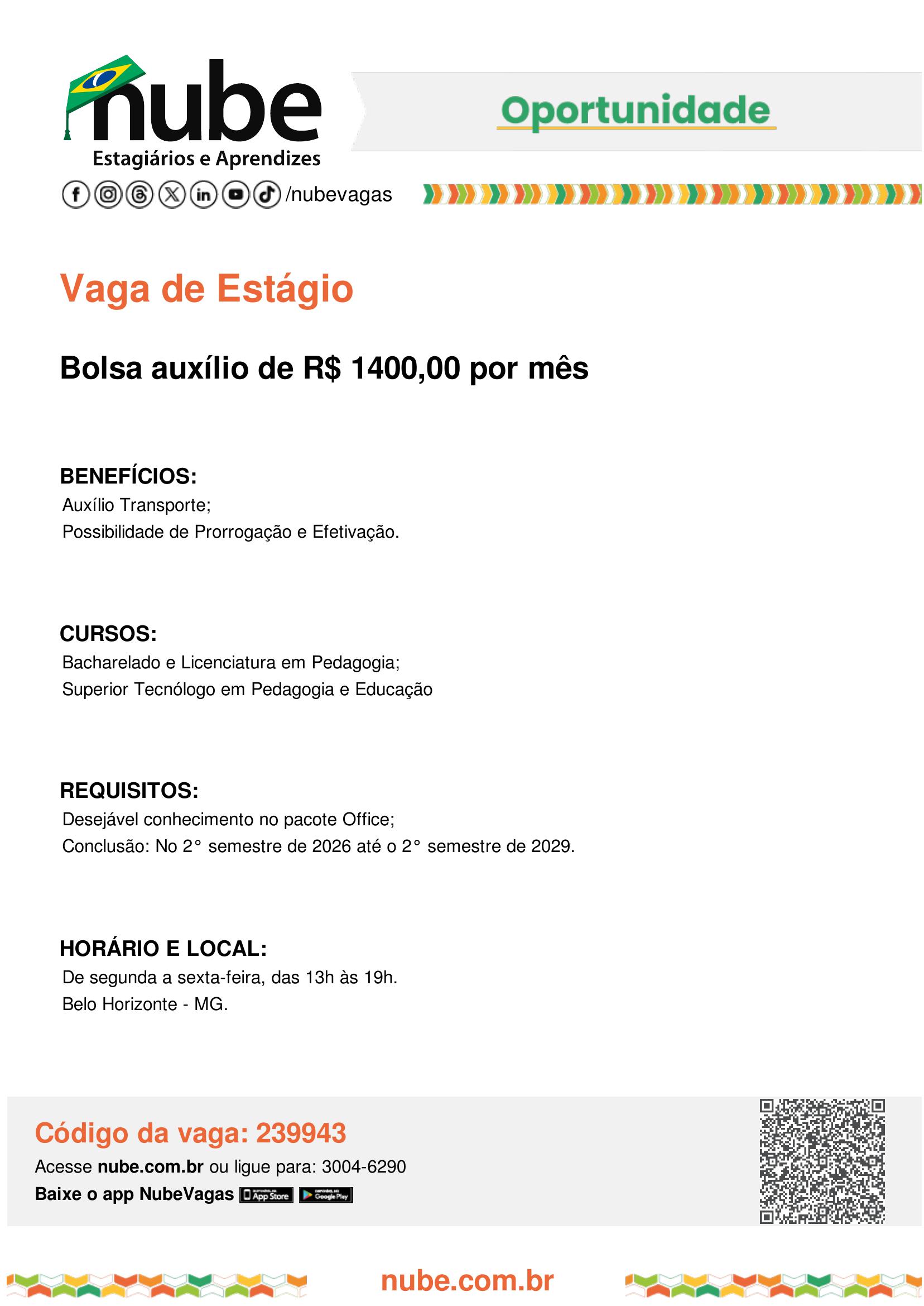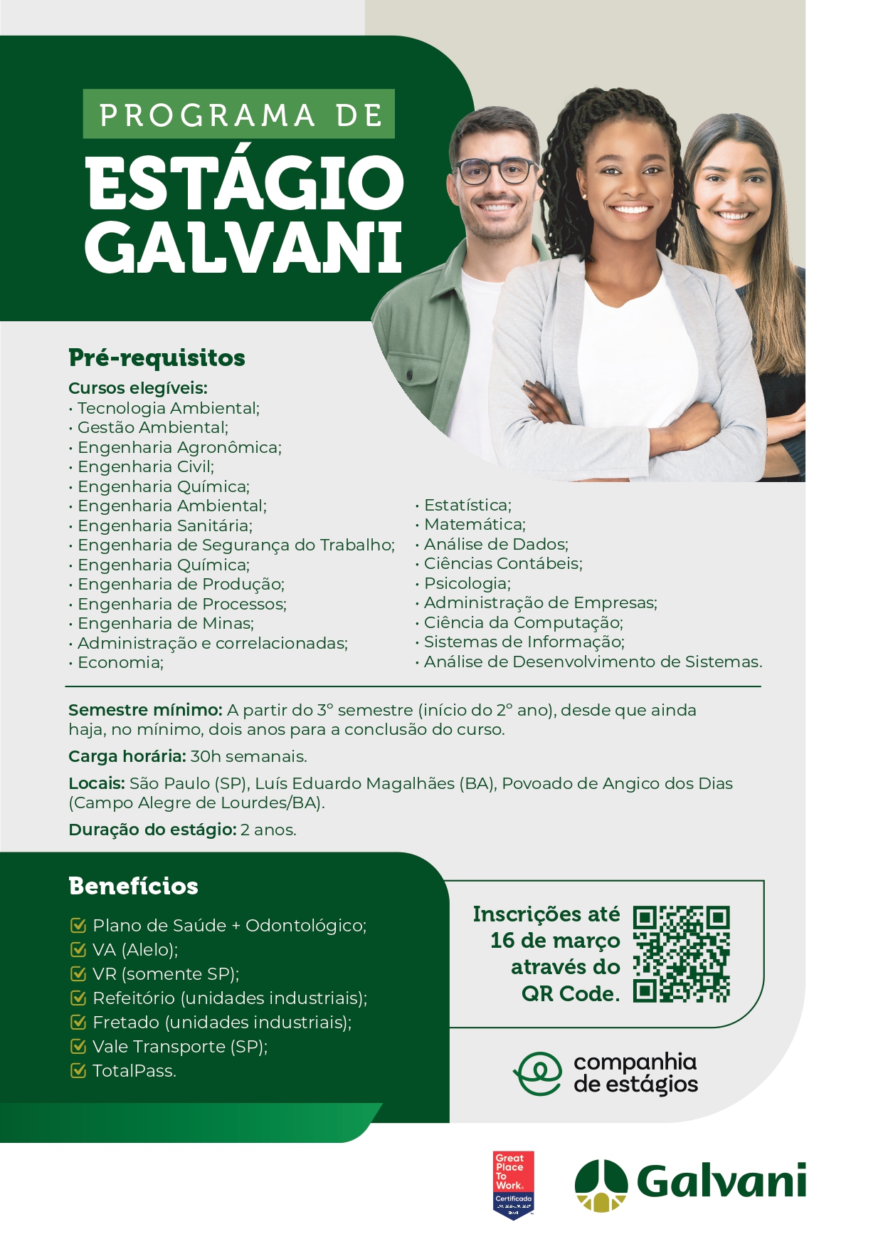 Cursos Aceitos: Computação, Sistemas, Tecnologia da Informação, Desenvolvimento de Software, Web e Mobile, Dados, Big Data, Inteligência Artificial e Analytics, Redes, Infraestrutura, Cloud e DevOps, Banco de Dados e Processamento de Dados, Matemática Computacional e Aplicada à Tecnologia, Automação, Robótica e Sistemas Inteligentes