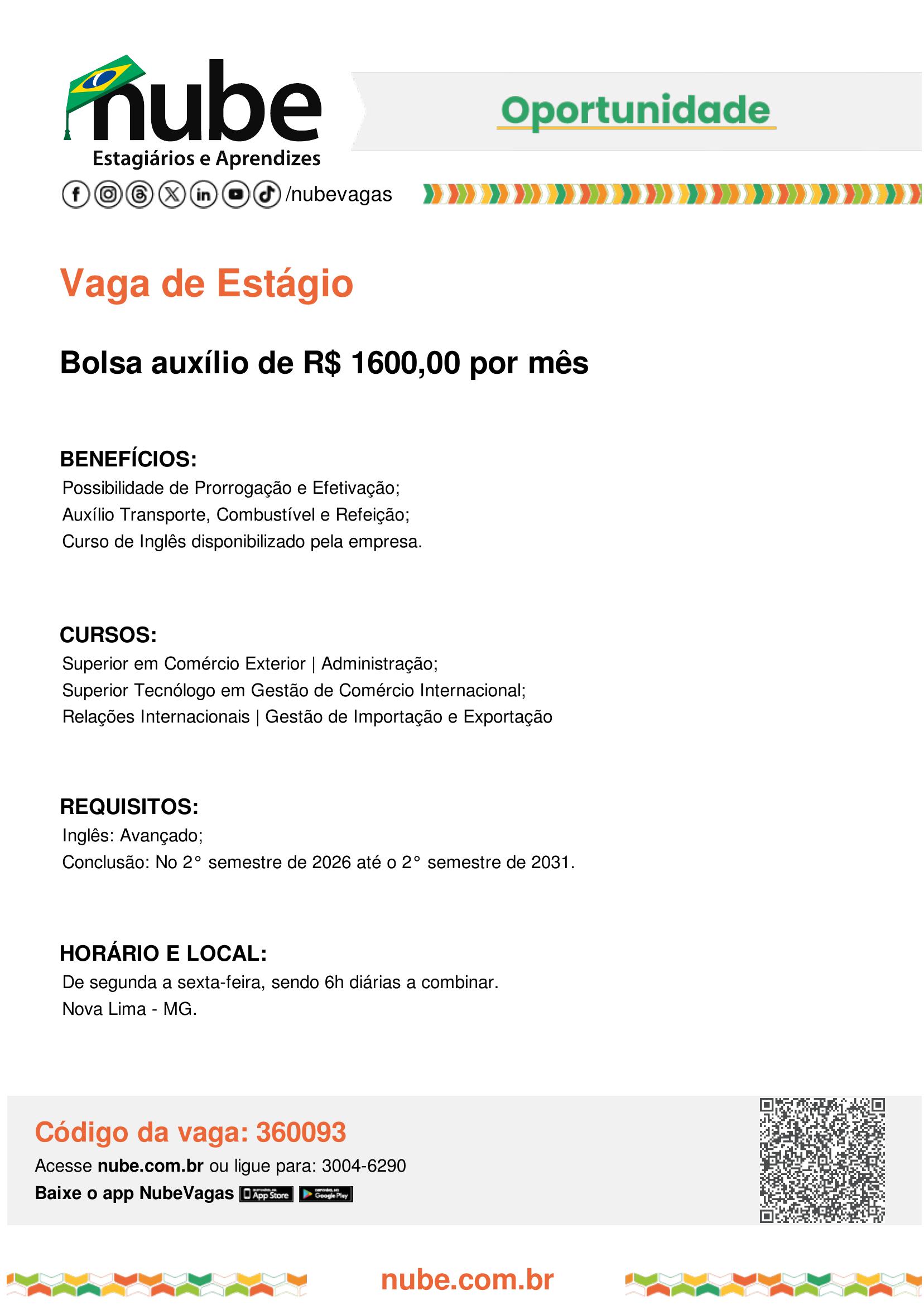 Cursos Aceitos: Administração, Ciências Econômicas, Comércio Exterior