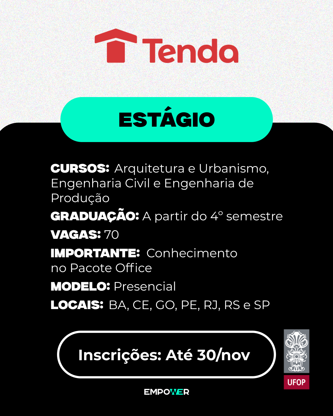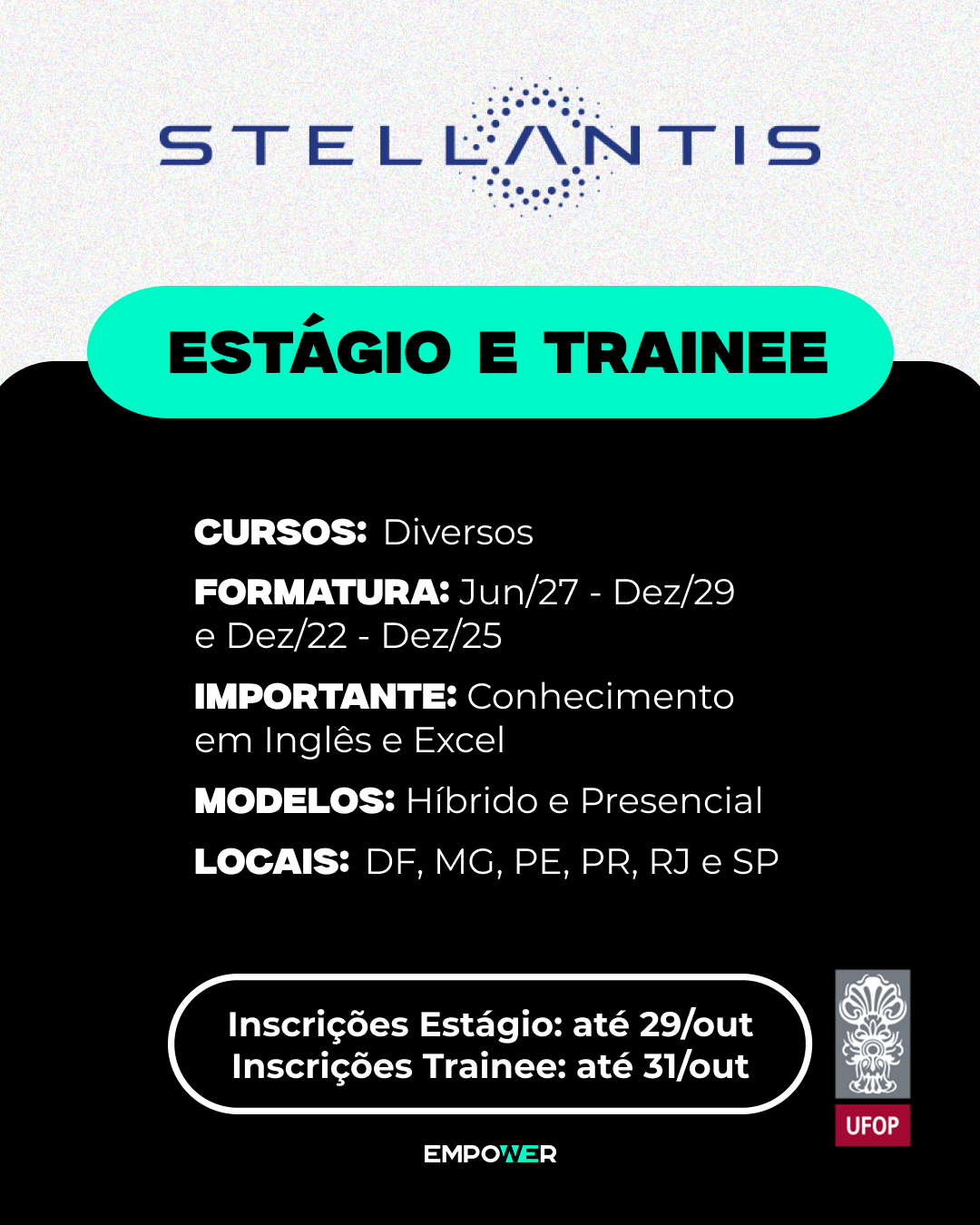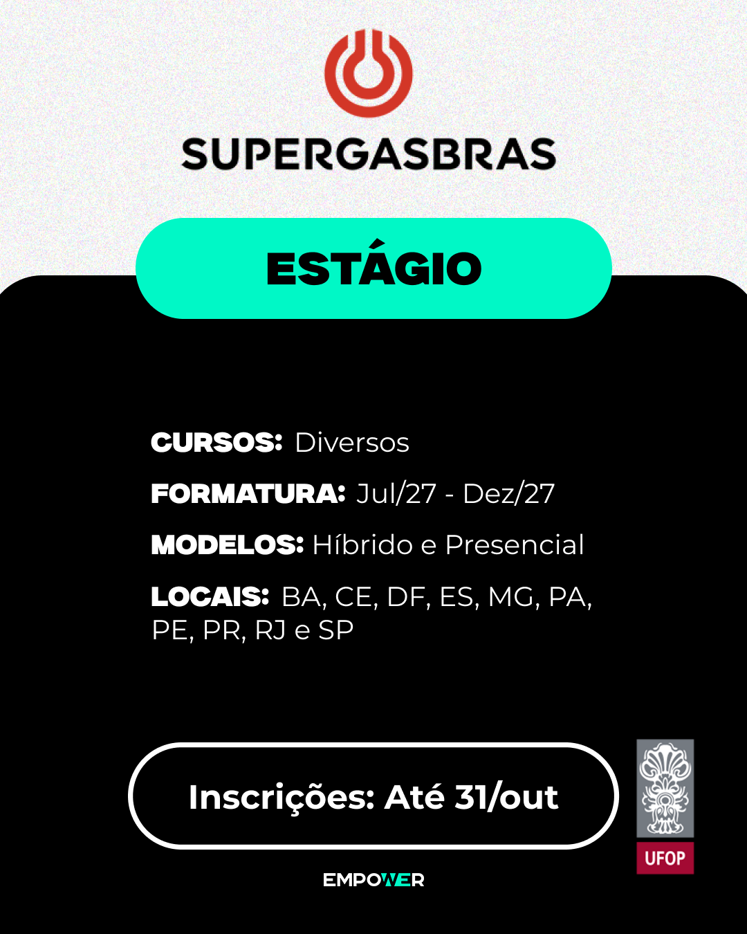O estágio presencial é direcionado para estudantes que estão concluindo o curso técnico ou superior com as formações abaixo: