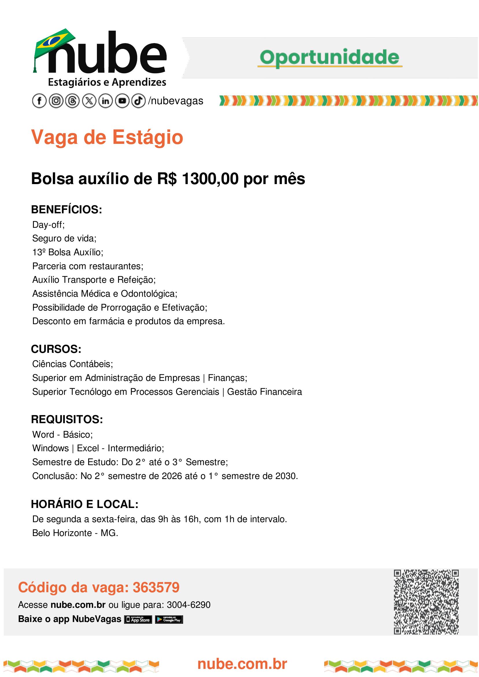 Programa de Estágio Sebrae Minas 2026 com Bolsade R$ 1.350,88