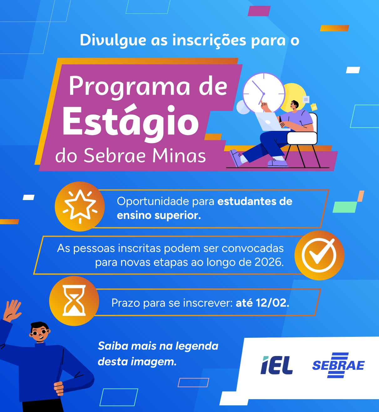 Programa de Estágio Sebrae Minas 2026 está com inscrições abertas