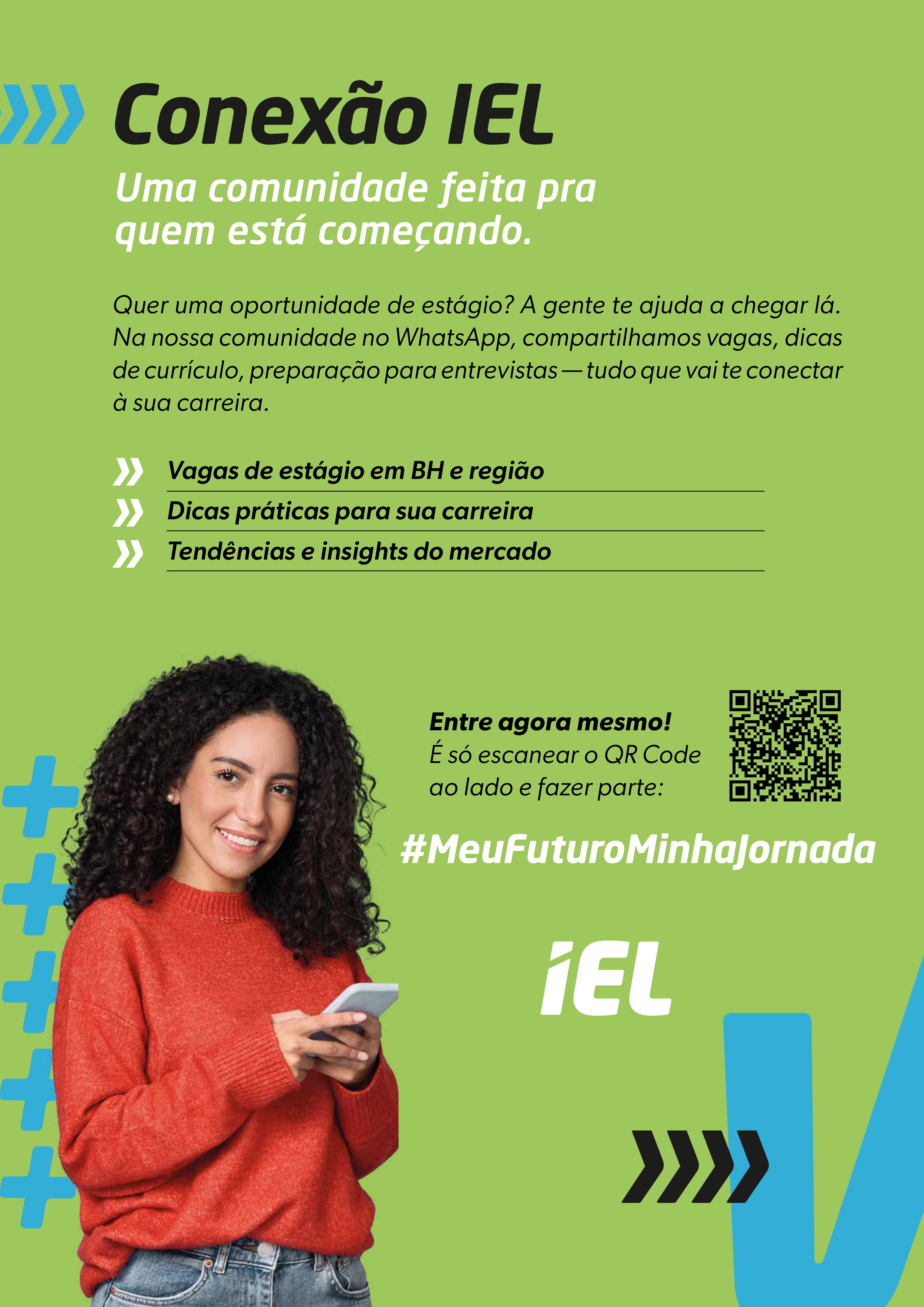 A CONEXÃO IEL é a sua comunidade no WhatsApp: um espaço estratégico com oportunidades, tendências e dicas certeiras para quem quer evoluir na carreira.