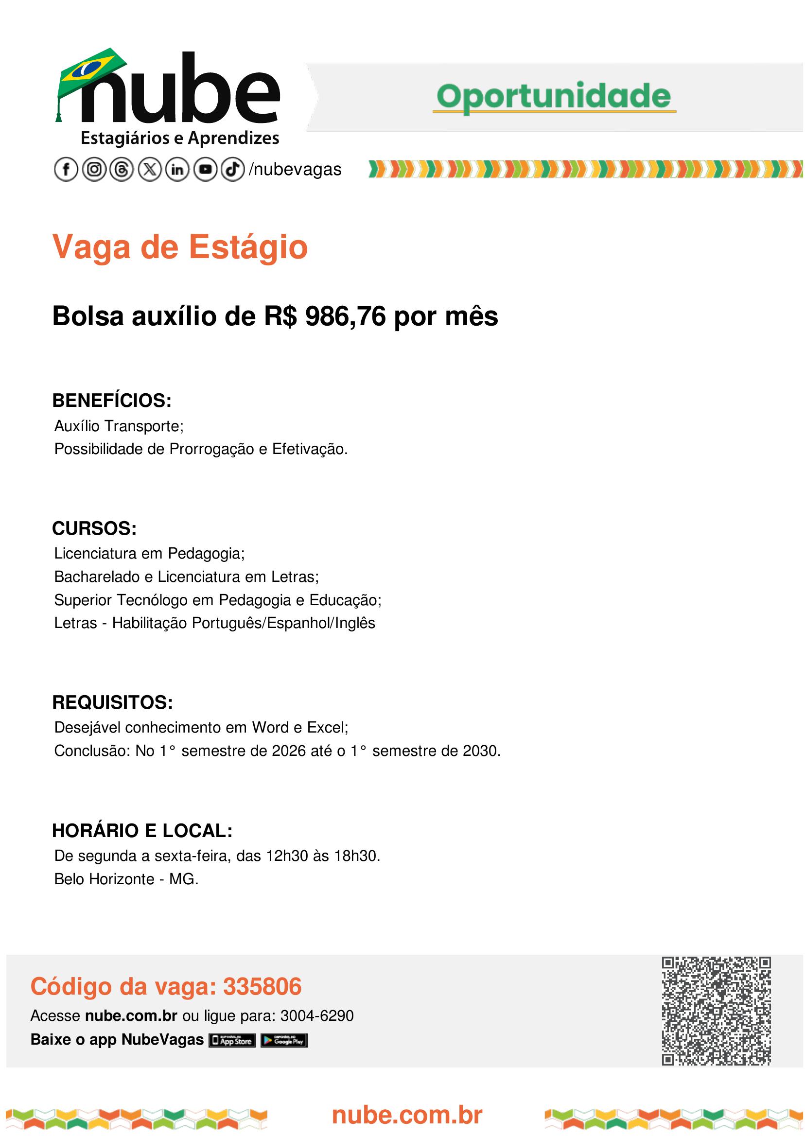 O estágio presencial é direcionado para estudantes que estão concluindo o curso técnico ou superior com as formações abaixo: