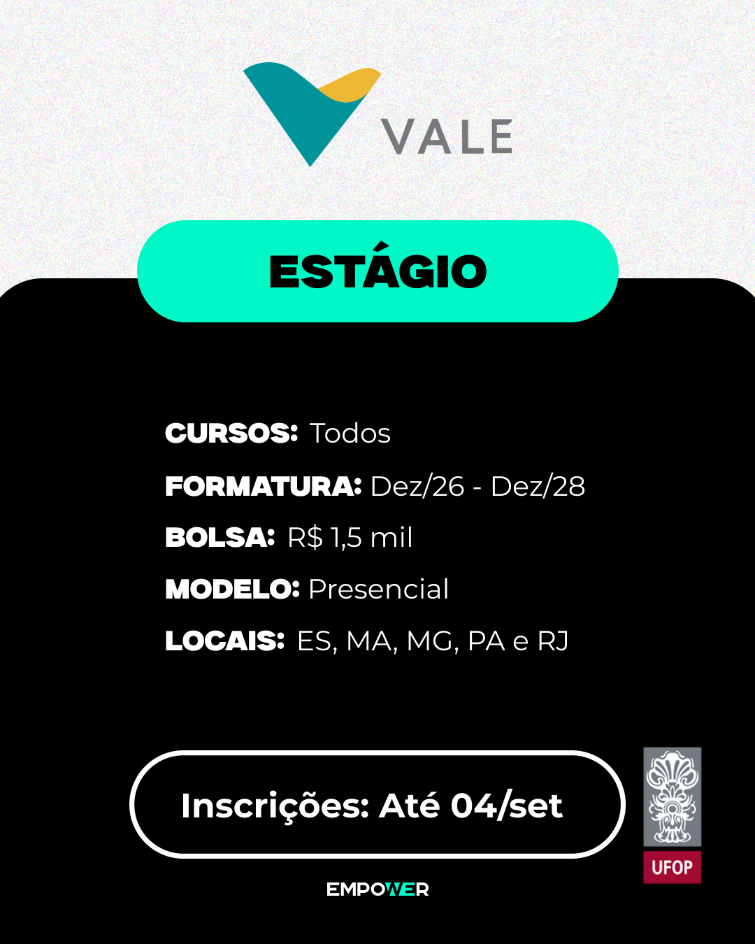 Inscrições e informaçõe no link: https://link.empower.vision/E-Vale