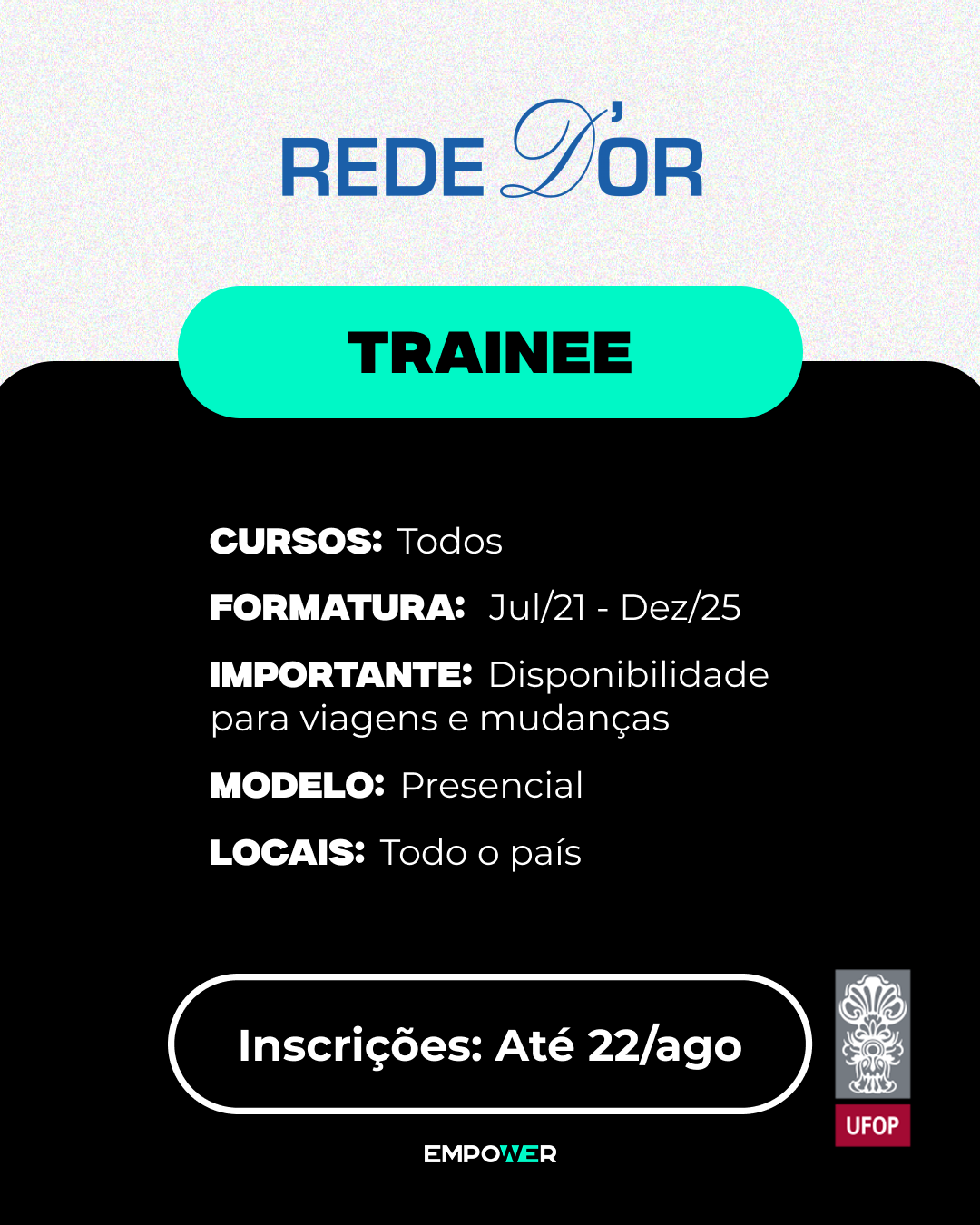 Inscrições e informaçõe no link: https://link.empower.vision/TraRedeDor