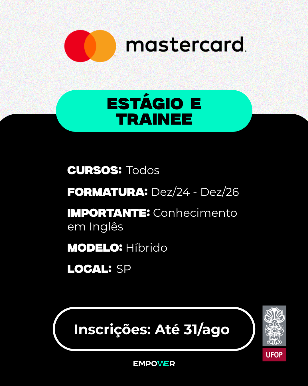 Inscrições e informaçõe no link: https://link.empower.vision/EstTraMastercard